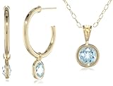 Bronze and 18k Yellow Gold Plated Genuine Sky Blue Topaz Drop J-Hoop Earrings and Pendant Set, 18"